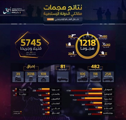 Ce rapport analyse l’activité militaire de l’État islamique (EI) en 2025, sur la base de l’infographie annuelle publiée par l’agence Amaq, l’organe de presse officiel de l’organisation.