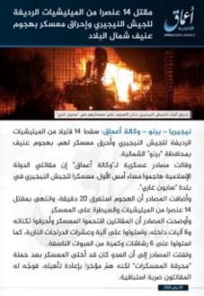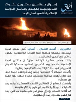 L’agence de presse Amaq, organe officiel de l’État islamique, a publié un long communiqué revendiquant l’attaque perpétrée par des combattants de la Province d’Afrique de l’Ouest (ISWAP) contre deux casernes de l’armée camerounaise dans la zone de Darak, dans la région de l’Extrême-Nord.